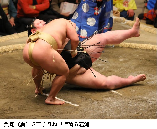 ▽石浦に剣翔は石浦が下手ひねりで勝ちました。