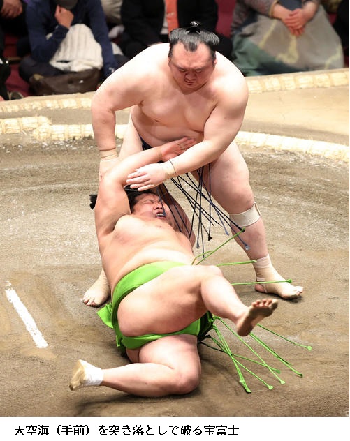 ▽天空海に宝富士は宝富士が突き落とし。天空海は負け越しました。