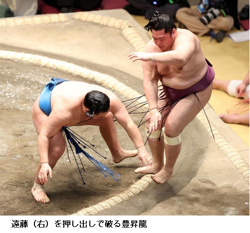 ▽豊昇龍に遠藤は豊昇龍が押し出し。