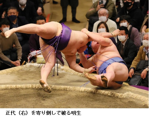▽明生に大関 正代は明生が寄り倒し。正代は5敗目です。