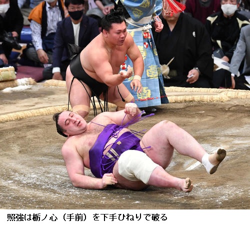 ▽栃ノ心に照強は、照強が下手ひねりで勝ちました。