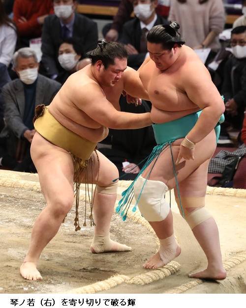 ▽琴ノ若に輝は、輝が寄り切り。