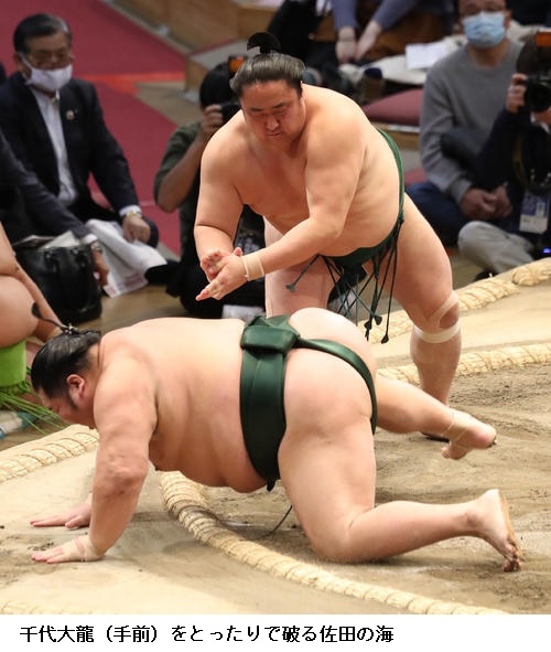 ▽千代大龍に佐田の海は、佐田の海がとったり。