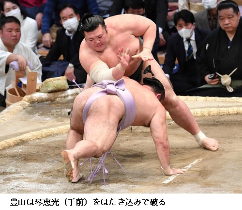 ▽琴恵光に豊山は、豊山がはたき込みで勝ちました。