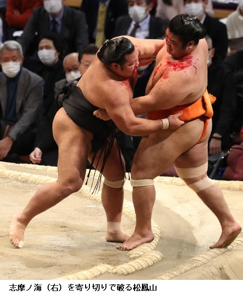 ▽志摩ノ海に松鳳山は、松鳳山が寄り切り。