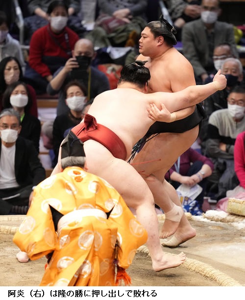 ▽阿炎に隆の勝は、隆の勝が押し出しで勝って敢闘賞です。阿炎も敢闘賞受賞です。