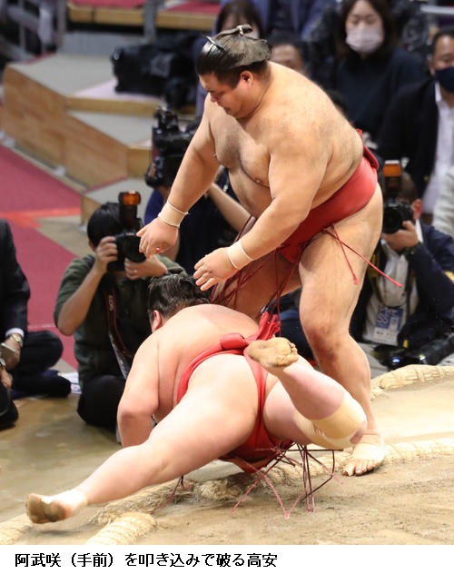 ▽阿武咲に高安は、高安がはたき込み。