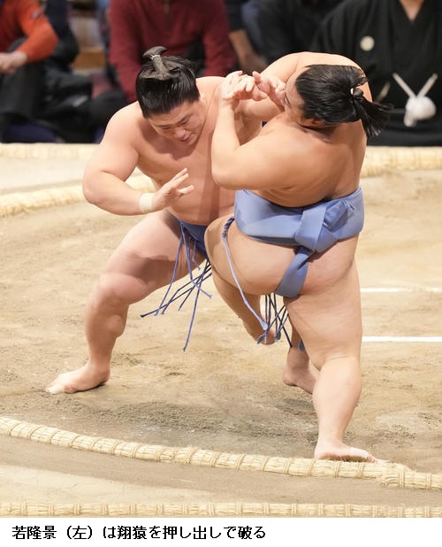 ▽翔猿に若隆景は、若隆景が押し出しで勝ち越し。翔猿は負け越しました。