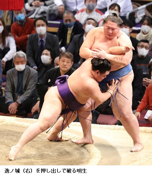 ▽逸ノ城に明生は、明生が押し出し。