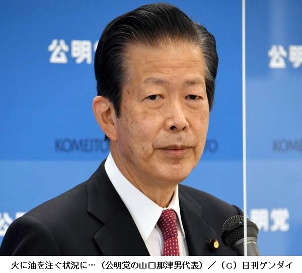 さらに、公明党の山口那津男代表が29日、900億円のクーポン事務経費について、「問題なし」と開き直ったため火に油を注いでいる。全額現金給付だと目的外使用されると持論を展開し、「クーポンは確実に使われ、効果をもたらす」と正当化してみせた。