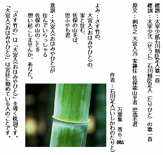 巻6-0955:さす竹の大宮人の家と住む佐保の山をば思ふやも君
