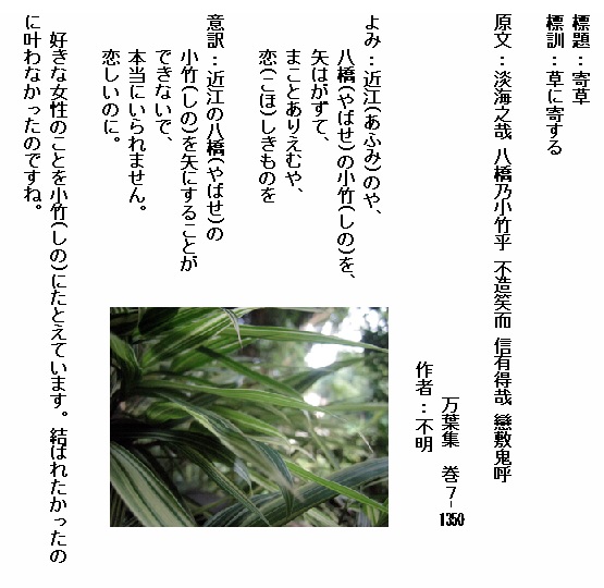 巻7-1350:近江のや八橋の小竹を矢はがずてまことありえむや恋しきものを