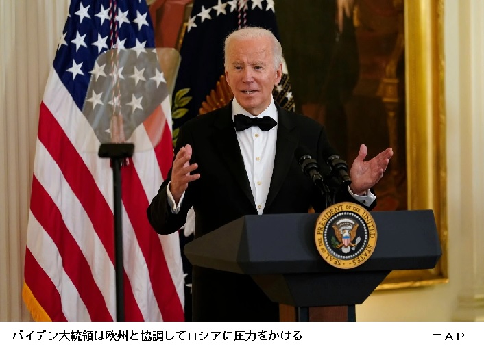 米大統領、ウクライナ侵攻なら「ロシアに経済対抗措置」 7日の米ロ首脳協議で伝達へ ―― バイデン米大統領とロシアのプーチン大統領は7日、オンライン形式で協議する。米政府高官によると、バイデン氏はロシアがウクライナに侵攻すれば欧州の同盟国と協調してロシア経済に深刻な経済的打撃を与える対抗措置を講じると伝える。北大西洋条約機構(NATO)やウクライナへの軍事支援の強化も選択肢になると示唆した。