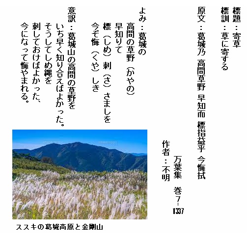 巻7-1337:葛城の高間の草野早知りて標刺さましを今ぞ悔しき