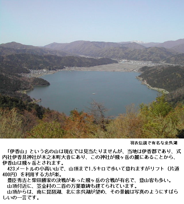 ◎伊香胡山・伊香山(いかごやま)は滋賀県伊香郡木之本町にある山。歌の名所です。