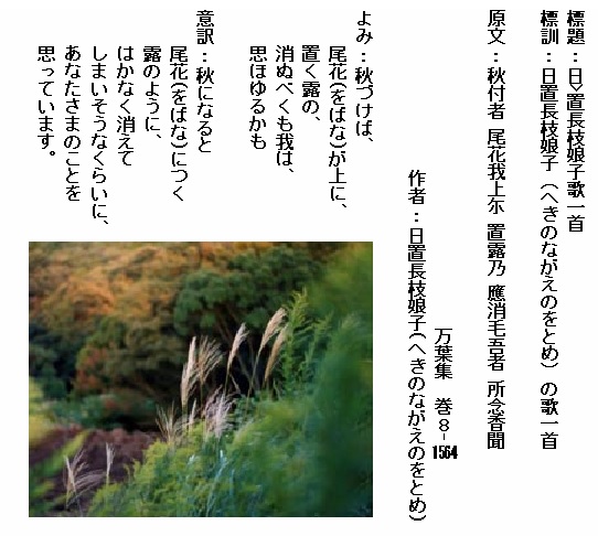 巻8-1564:秋づけば尾花が上に置く露の消ぬべくも我は思ほゆるかも