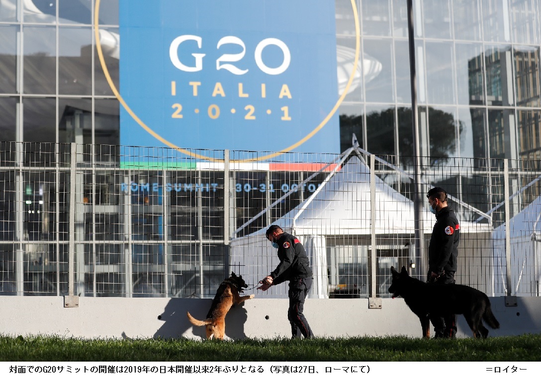 G20サミット、30日開幕 中ロ首脳はオンライン参加 ―― 20カ国・地域の首脳会議(G20サミット)が30日、イタリアの首都ローマで開幕する。対面での開催は2019年の日本開催以来2年ぶりで、バイデン米大統領を含む米欧の首脳らが顔を合わせる。中国、ロシア両政府は29日、それぞれの首脳がオンラインでの参加になると発表し、外相が現地入りする。