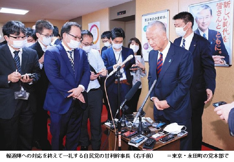 甘利氏は幹事長就任後の記者会見で、現金授受問題に関し「私は事件に関して(当時は)事情を全く知らされていない。寝耳に水」と語り、自身の潔白をあらためて強調していたが、ツイッターでは問題を批判する投稿も相次いでいた。 (東京新聞 2021年11月1日 01時19分)