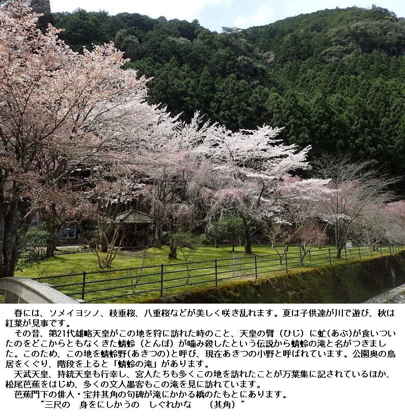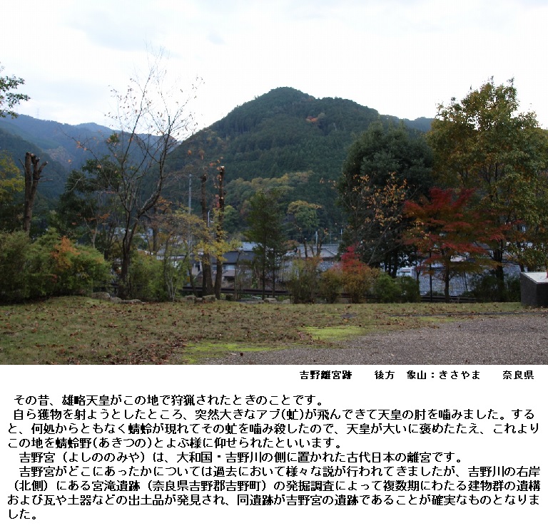 ◎「吉野の秋津(あきづ)の小野(おの)」は現在の奈良県吉野町御園(みその)付近とされています。