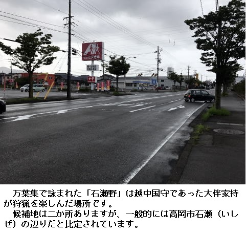◎石瀬野(いはせの)は、現在の高岡市石瀬あたり、または富山市岩瀬あたりではないかと考えられています。