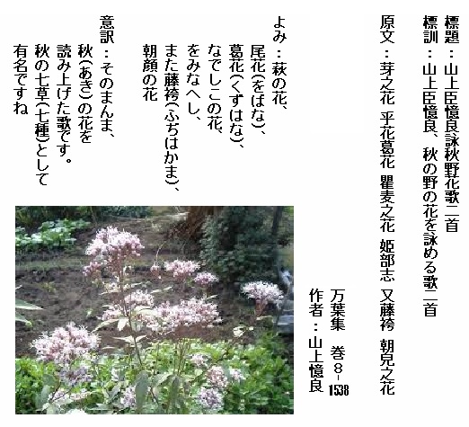 巻8-1538:萩の花尾花葛花なでしこの花をみなへしまた藤袴朝顔の花