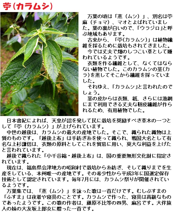 万葉集には1首だけ、山上憶良の秋の七種(ななくさ)の歌に登場します。
