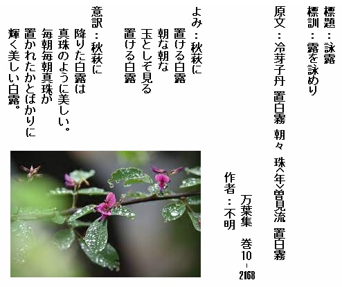 巻10-2168:秋萩に置ける白露朝な朝な玉としぞ見る置ける白露