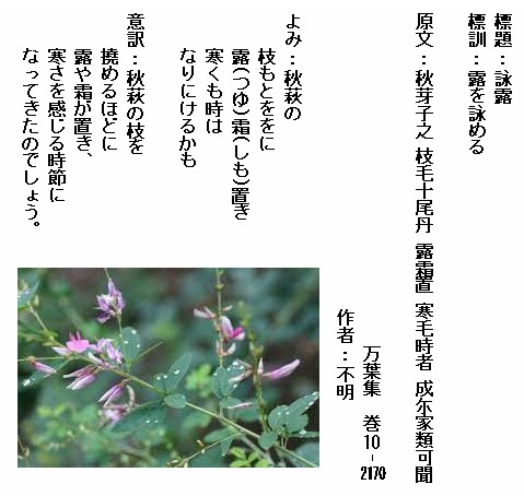 巻10-2170:秋萩の枝もとををに露霜置き寒くも時はなりにけるかも
