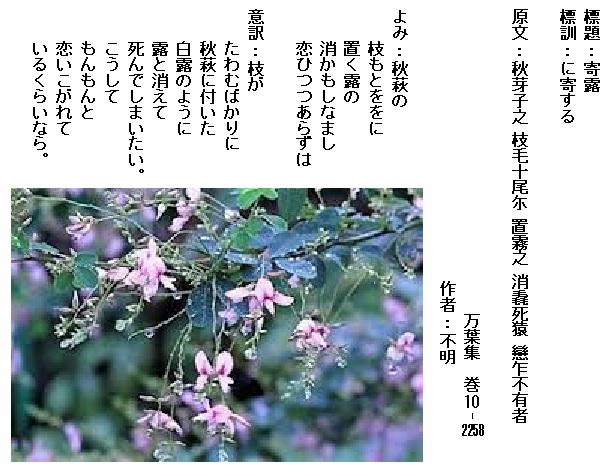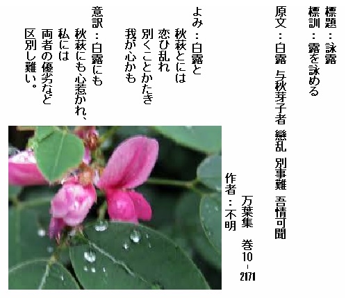 巻10-2171:白露と秋萩とには恋ひ乱れ別くことかたき我が心かも