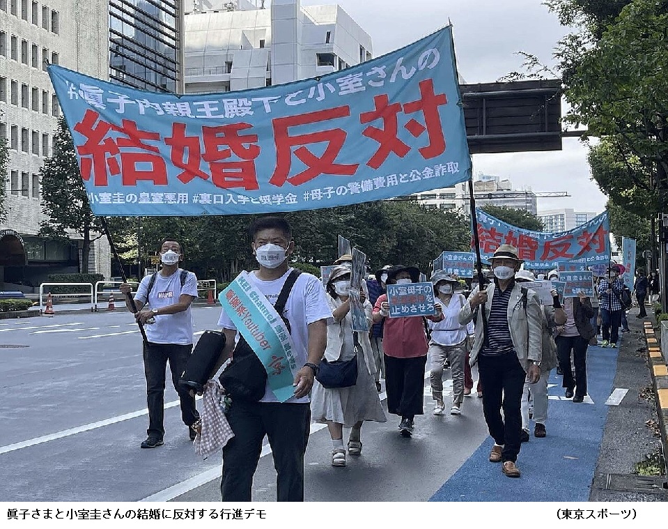 真子さまと小室圭さんの「結婚反対!」異例の行進デモが銀座で開催 ―― 秋篠宮家の長女眞子さま(29)と小室圭さん(30)の結婚に反対する行進デモが10日、都内で行われた。