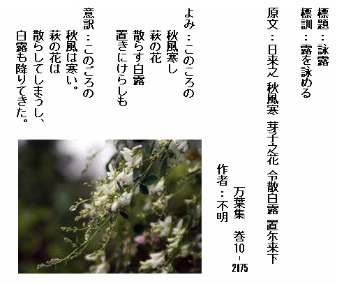 巻10-2175:このころの秋風寒し萩の花散らす白露置きにけらしも
