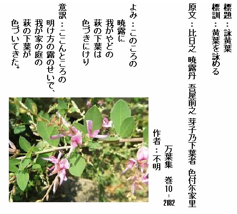 巻10-2182:このころの暁露に我がやどの萩の下葉は色づきにけり