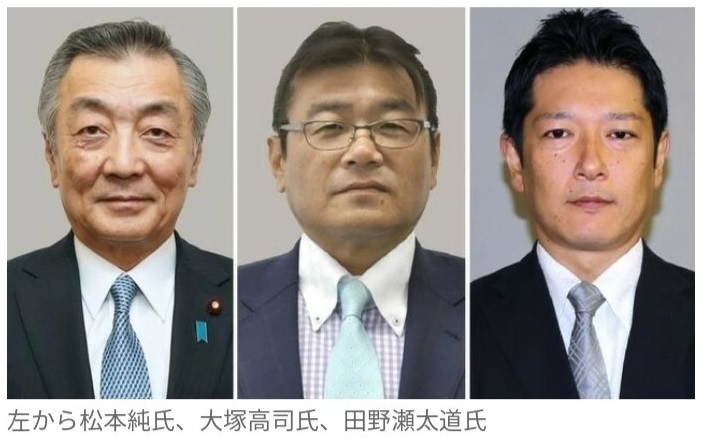 3氏はそれぞれ麻生派、竹下派、石原派所属の自民党議員だった。岸田政権の発足に伴い副総裁に麻生派会長の麻生太郎前副総理・財務相、幹事長に麻生派の甘利氏がそれぞれ就き、松本氏らを衆院選前に復党させるとの観測が出ていた。