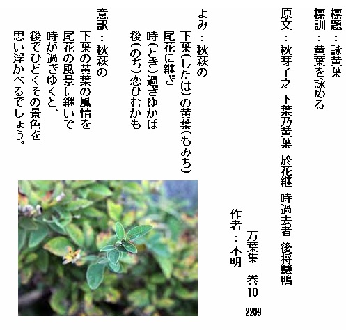 巻10-2209:秋萩の下葉の黄葉花に継ぎ時過ぎゆかば後恋ひむかも