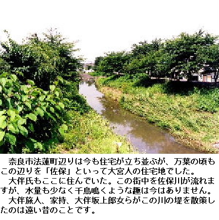 奈良市中央部北方、佐保川上流一帯の総称です。《日本書紀》に狭裒、匝布などとしてみえ、《万葉集》にはこの地を詠んだ歌が多い。このあたりには佐保大納言と呼ばれた大伴安麻呂の宅や長屋王の佐保宅(作宝楼ともいう)などがあり、奈良時代高官の邸宅のあったところと考えられます。また、奈良市街北方の丘陵地を佐保山といいますが,元正・聖武天皇、光明皇后や藤原不比等・武智麻呂、大伴氏一族などが葬られており、奈良時代の葬地としては一等地であったようです。