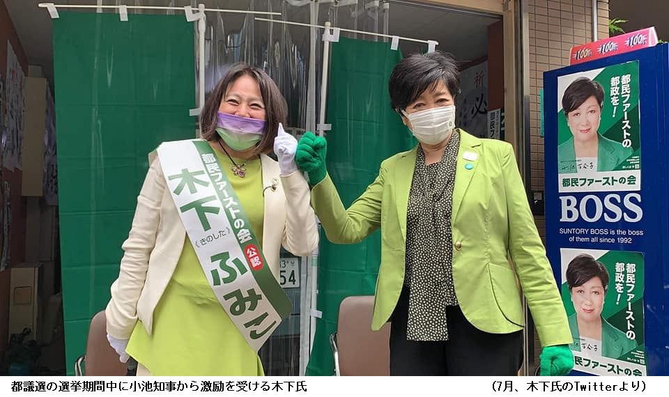 欠席続ける木下都議に、小池知事「状況を客観視すべき」と苦言 ―― 東京都の小池百合子知事は13日、記者団の取材に応じ、都議選の選挙運動期間中に無免許運転で人身事故を起こし、発覚後に議会を欠席し続けている木下富美子都議について「議会から召喚状(出頭要請)が出ているという状況を、彼女はどう理解しているのか。そのことを、しっかりと客観視すべきだと思う」と苦言を呈した。