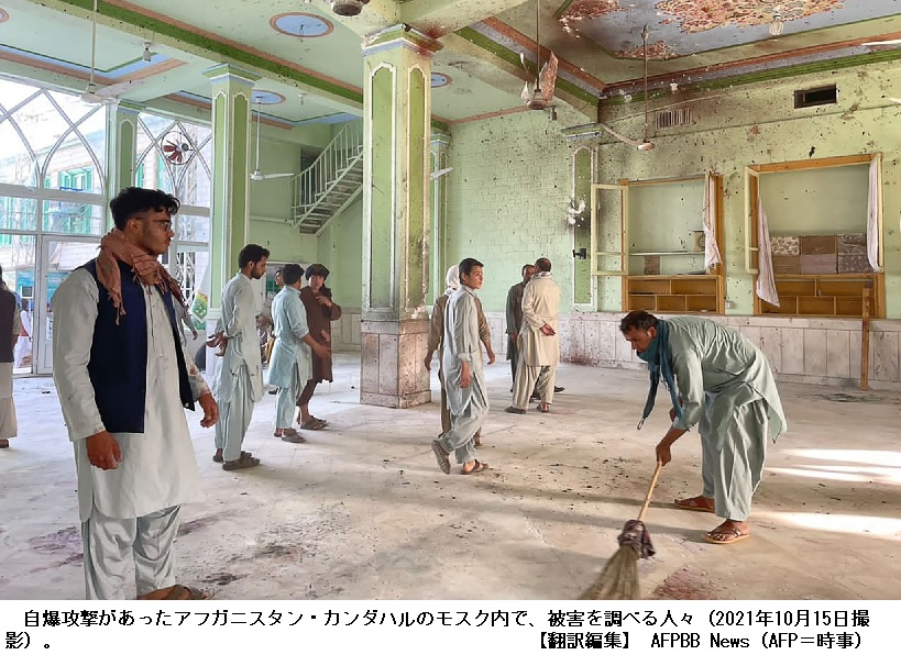 アフガンでは8日にも、北部クンドゥズのシーア派モスクで金曜礼拝中に自爆テロが起き、少なくとも55人が死亡。少数派のシーア派を敵視する過激派組織「イスラム国」(IS)が犯行を主張した。タリバンがアフガンで実権を掌握した8月中旬以降、情勢不安の隙を突くようにテロが繰り返されている。
