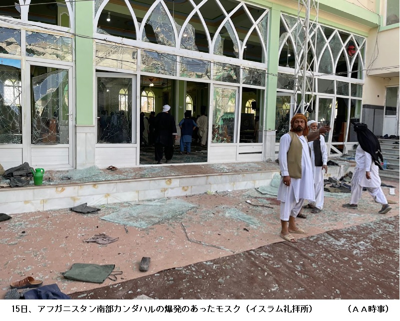 アフガン南部のモスクで自爆テロ、41人死亡 金曜礼拝中 ―― アフガニスタン南部カンダハルにあるイスラム教シーア派のモスク(礼拝所)で15日、金曜礼拝中に爆発が起き、AFP通信によると、少なくとも41人が死亡、70人が負傷した。犯行声明は出ていないが、イスラム主義組織タリバンの地元当局者は自爆テロとの見方を示した。