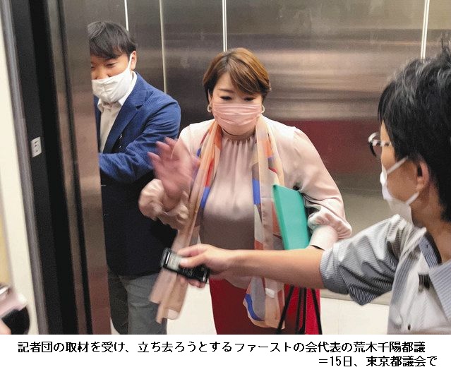 「ファーストの会」荒木代表、会見も開かず立ち去る 衆院選の候補者擁立断念 ―― 東京都議会から国政進出を目指した政治団体「ファーストの会」は15日、公示が目前に迫った衆院選で候補者の擁立を断念した。華々しい設立会見から2週間足らずでの撤退。代表を務める荒木千陽ちはる都議(39)はこの間、再三の取材に「詳しくは後日」と繰り返すばかり。結局最後まで十分な説明は聞けなかった。