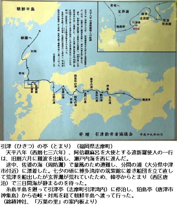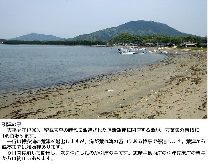 ◎引津(ひきつ)の亭(とまり)は、現在の福岡県糸島郡志摩町の湾部と考えられています。