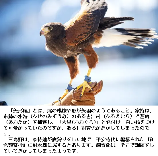 意訳:葦や檜の生える山や坂を越えて、年が行き変わる、その年月が長く、都の輝きから離れて、越の国に住むと、大王の統治なされる国は、都も、この地も同じと、心には思っているのだが、語り合ったり、出会ったりする人々の顔が少ないと、物思いが頻繁です。そのために、気が休まるだろうと、秋になると、萩が咲きほこり、石瀬野に馬に乗って行き、あちらこちらを鳥を野を踏み飛び立たせて、白塗りの小さな鈴を揺らして、鳥の飛び立ちに合わせて鷹を遣り、その姿を仰ぎ見ながら、鬱積した気持ちの内を慰め楽しみながら、枕を共にする妻の、その妻屋の内に、鳥の止まり木を作って、鷹を留らせ私が飼う、その真っ白な斑を持つ鷹よ。