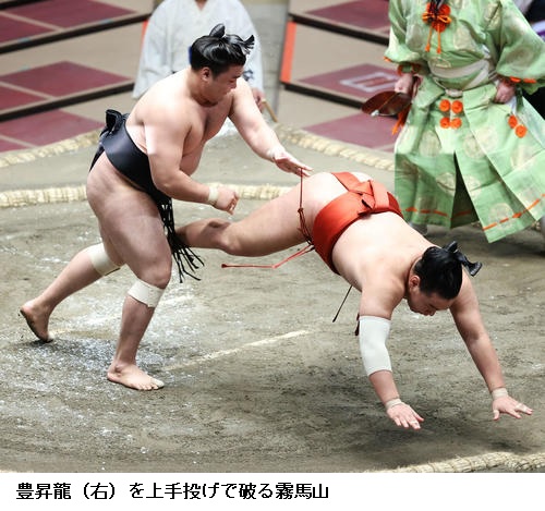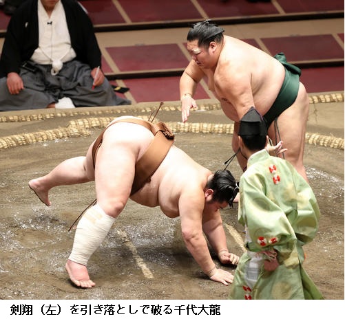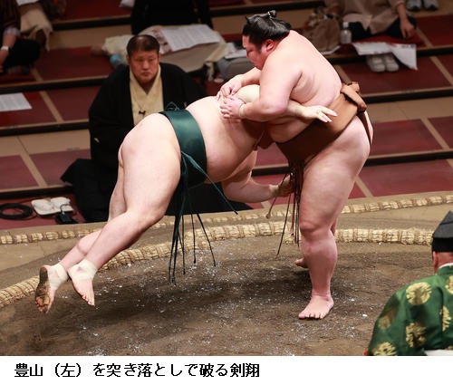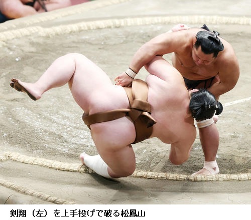 ▽十両の松鳳山に剣翔は松鳳山が上手投げ。