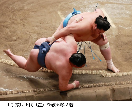 ▼琴ノ若に大関 正代は琴ノ若が上手投げで初挑戦の大関に勝ちました。