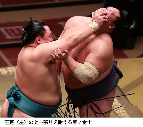 ▼新横綱 照ノ富士に玉鷲は照ノ富士が寄り切りで勝って8連勝。ただひとり、中日に勝ち越しを決めました。