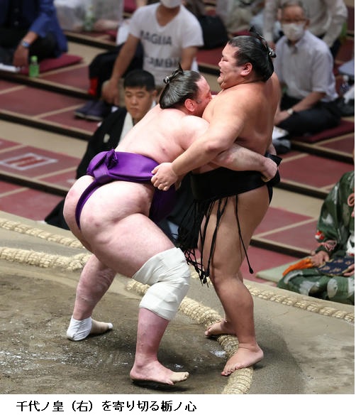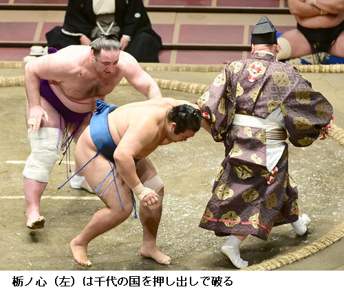 ▽千代ノ皇に栃ノ心は栃ノ心が寄り切り。