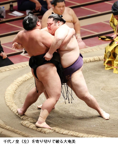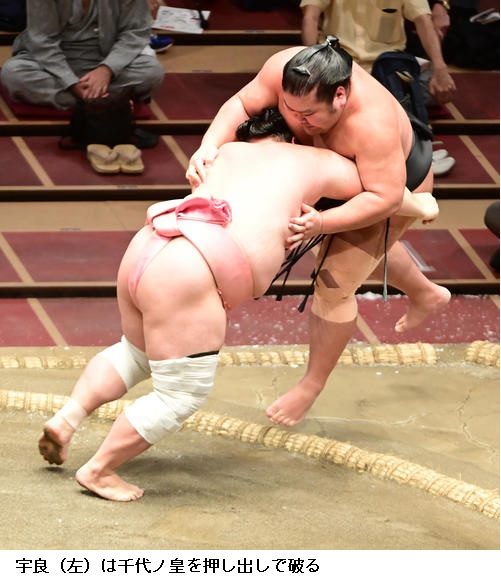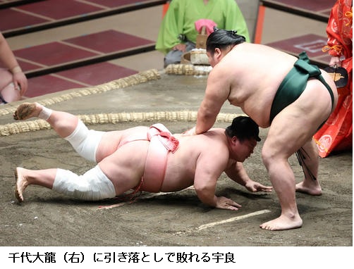 ☆千代大龍「引いた瞬間にやばいと思ったけど、宇良関が落ちる形になって助かった。宇良関とやるのは怖い。潜ったり、足をとってきたり。苦手です」