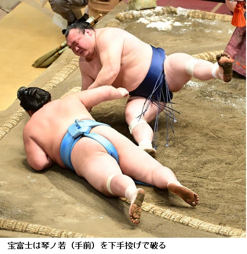 ▽宝富士に琴ノ若は宝富士が下手投げ。