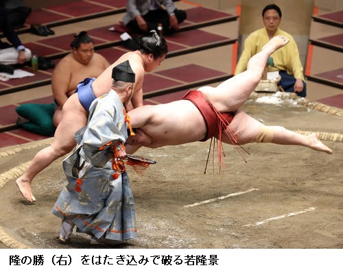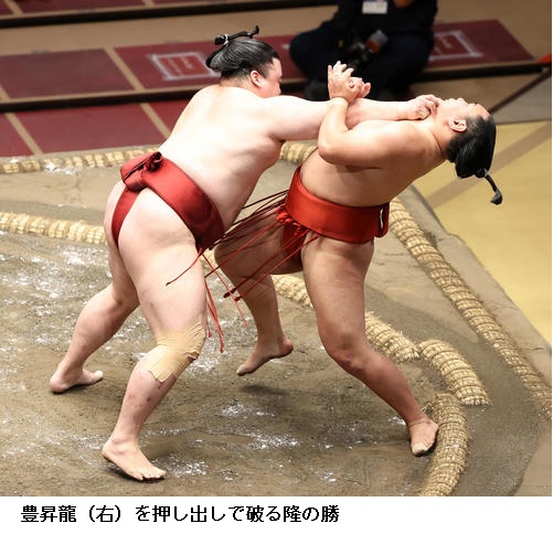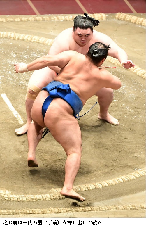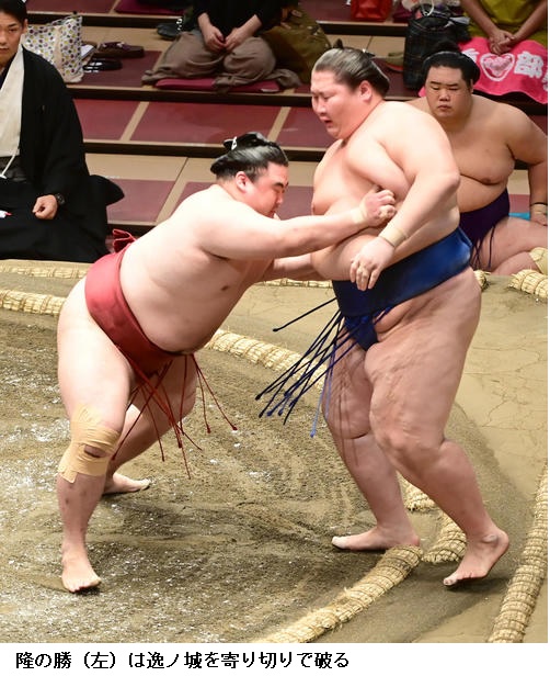 ▽隆の勝に小結・逸ノ城は隆の勝が寄り切り。