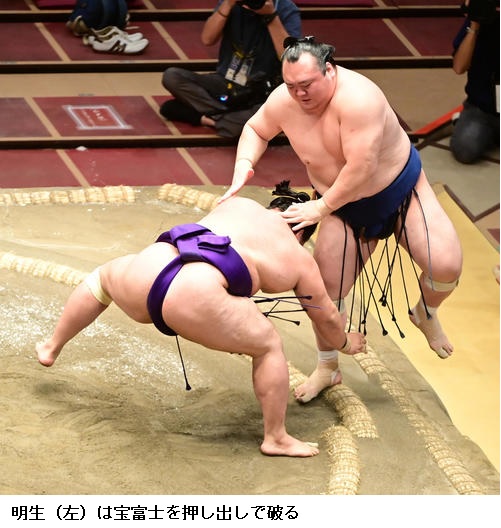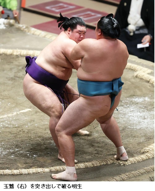▽玉鷲に新関脇・明生は明生が突き出し。
