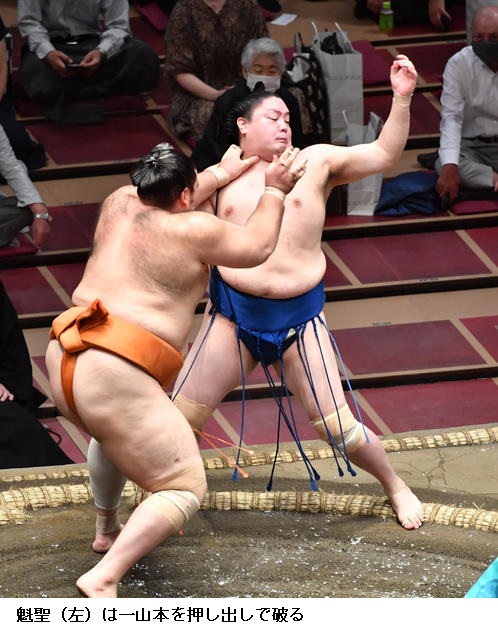 ☆魁聖「今場所やっと自分の右四つがとれた。(振り返ると)疲れたっすね。全然星が伸びずに。何とか最後に勝って幕内に残れる…のかな」